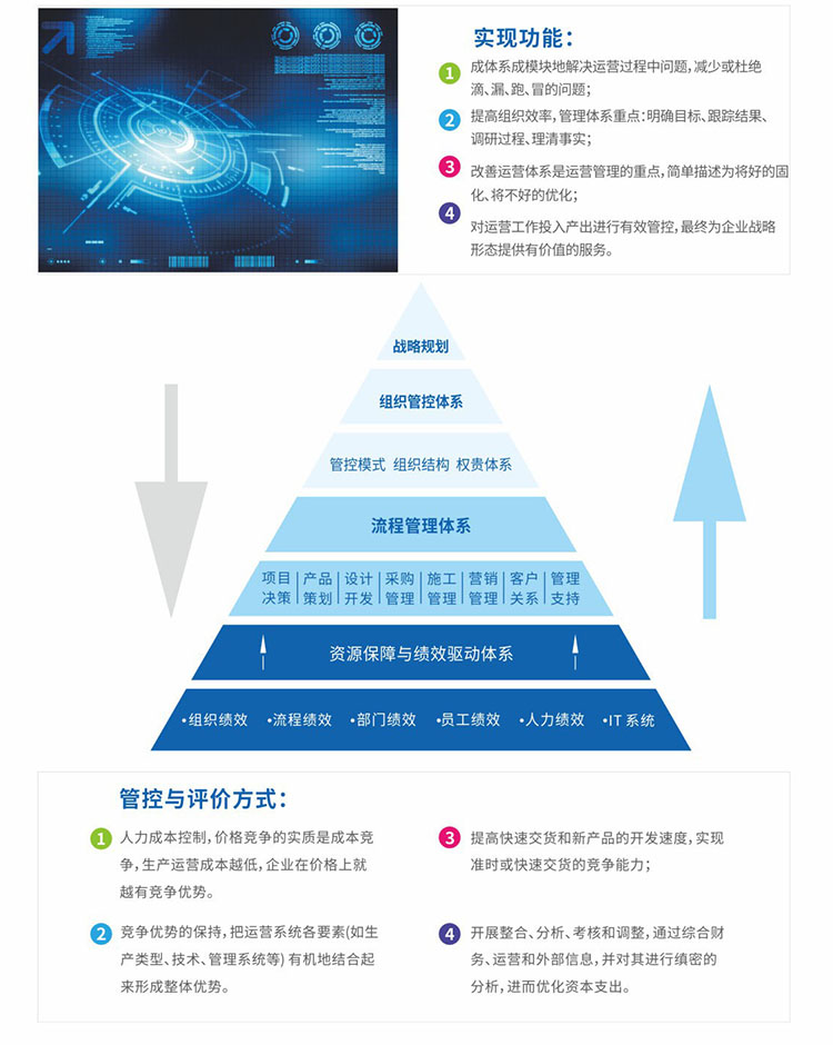 運營管理戰略包含:減少企業現有利益損失、提高企業組織的經營效率(組織效率、推、拖、拉)、有序改善企業運營體系(不良習慣、制度流程)、提高投入產出比(經營模式改良)。